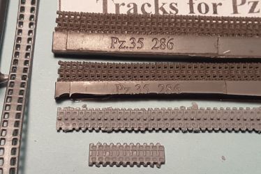 The picture above shows the Part etched brass track set P72-107 on an assembled ESCI Pz 35(t). Once folded over the surface, detail is good yet I find it still too thin to pass as accurate Pz.35(t) tracks but still a great improvement over the ESCI kit track.