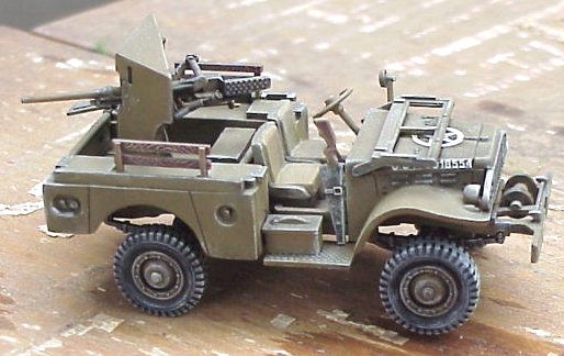 A beautifully detailed model, and a very simple kit to build. This kit is based on the US 3/4 ton Light Truck WC 51 kit. Like that kit, this one has a very detailed suspension, excellent driving compartment, and well detailed flatbed. This GMC (Gun Motor Carraige) kit contains a different flatbed for the 37mm anti tank gun mounted in the rear. It has ammunition storage bins with positional covers, the windshield can be positioned up or down (but no clear plastic is included), a winch is included for the front bumper, and plenty of stowage for the outside, such as tools, gas cans and bedrolls.