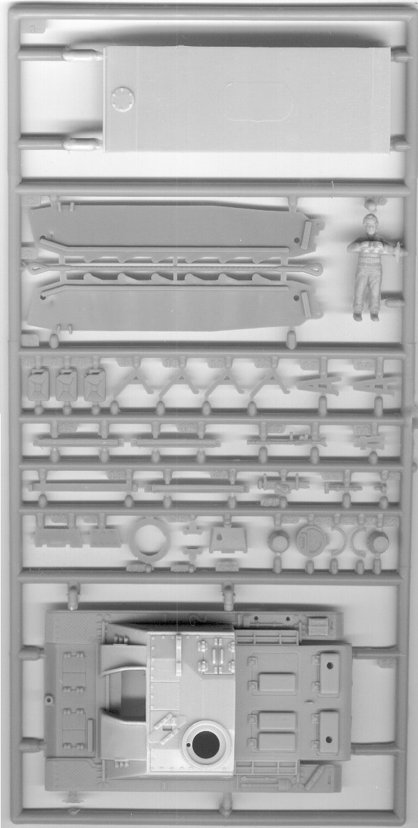 Although this preview is very critical, I consider the ESCI Stug a good kit. It gives you the possibility to build the Stug III G (early version with bolted mantlet) or the Stuh 42 (with 10,5 cm howitzer as support artillery), and with a bit of work it can be built into a very appealing model. I will likely replace one of my lower hulls with one from the Revell Pz. III, as I want to build one of my Stugs without side-skirts.