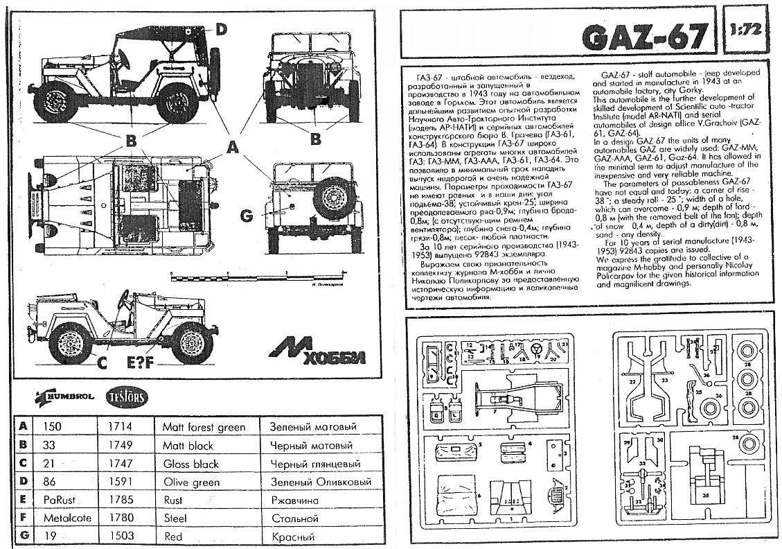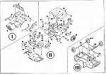 Detail is quite nice. Kit has 49 parts which are molded in a softish light grey plastic and spread over two sprues. There is some flash and a few seams to remove from most of the parts. Also there is a bit of roughness to the castings that will force you to sand some of the body panels to get a smoother finish. The wheels/tires are little jems. You get the option of a folded or deployed cover (part 6) for the interior. The deployed version is well done dut suffers from the same fate as all others that I have seen - the inside surface has not folds or creases. There are no decals and a small instructions sheet. The instructions are a three step affair of exploded diagrams showing how all the parts go together. The diagrams are reasonably easy to follow though a bit vague in a few spots. The sprues have the name Colibri cast onto them. I'm not familiar with Colibri but a browse through the OTW manufacturers page seems to indicate that Colibri, Fort, Komintern and MGD are all inter-related. Do step 1 as per the instructions. Watch the placement of the instrument panel (part 27) and make sure that it sits up high enough to be level with the bottom of the holes for the windshield pivots. Not doing this will produce a gap between the window frame and the body which is what happened to me. In the end this didn't affect me much as I had already decided to mount the windshield in the folded position and the cover I added over top of the frame filled the space nicely. For step 2 I found the following build sequence made construction easier: