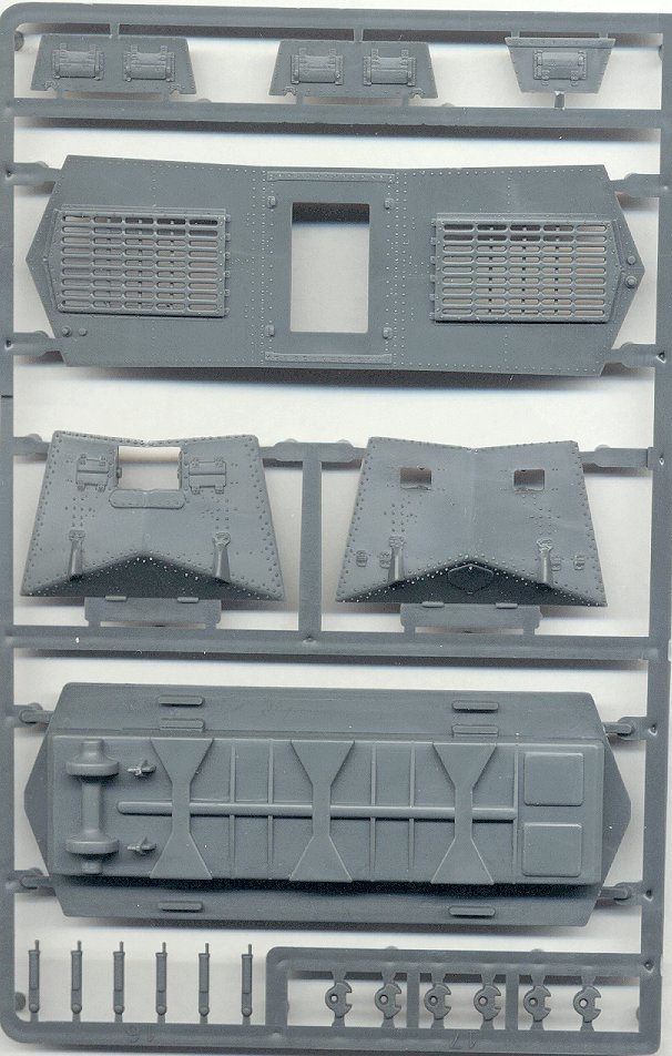 Like Emhar's earlier Mark IV series, this is a very simple kit with only 30 parts. But once again, these parts are extremely well-detailed, with superb rivets, recessed panel lines, and very sharp molding. Some quick observations: I wish that the hatches would have been molded open, as well as the view ports. From what I recall reading the other reviews, this is a very accurate kit, with only a couple of very minor tweaks needed to correctly represent specific vehicles.