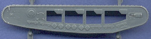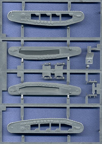 ![]() OK, so am I the only one who looks at that box top, and thinks that the tank is driving away from the viewer? What a weird looking tank ... But ... the kit is great. For those of you who have seen Emhar's previous A7V, you'll know what to expect with this model. It is an extremely simple kit with few parts, but the detail molded onto these parts is fantastic. Even the tracks are nicely done for a change. Although they are molded onto the kit, they look great. The hull is made up of several oddly-shaped pieces, as you can see below, but it looks as though it will go together quite easily.