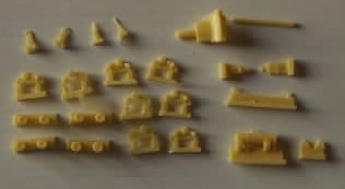 The other bits are for the muffler and auxiliary muffler, tow brackets, antenna mount, gun and MG. (Sorry for the low resolution pictures of the parts. I thought I had taken better ones when I started to work on this kit, but if so, I must have lost them.)