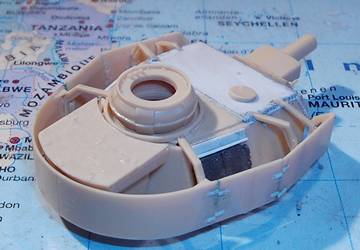 6. Quality of casting Overall detail is nicely done and (mostly) crisply cast. Almost no air bubbles are present. However, the single piece hull is a very large piece of resin that was distorted in my example. I tried to rectify this by heating and reshaping, but the top of the hull remained concave (probably due to shrinking when the resin cooled). For that reason, the only option that remained was to redo the top plate of the hull. This either means scraping off the detail and building the hatches and turret splash guard from scratch, or scavenging a Revell kit...