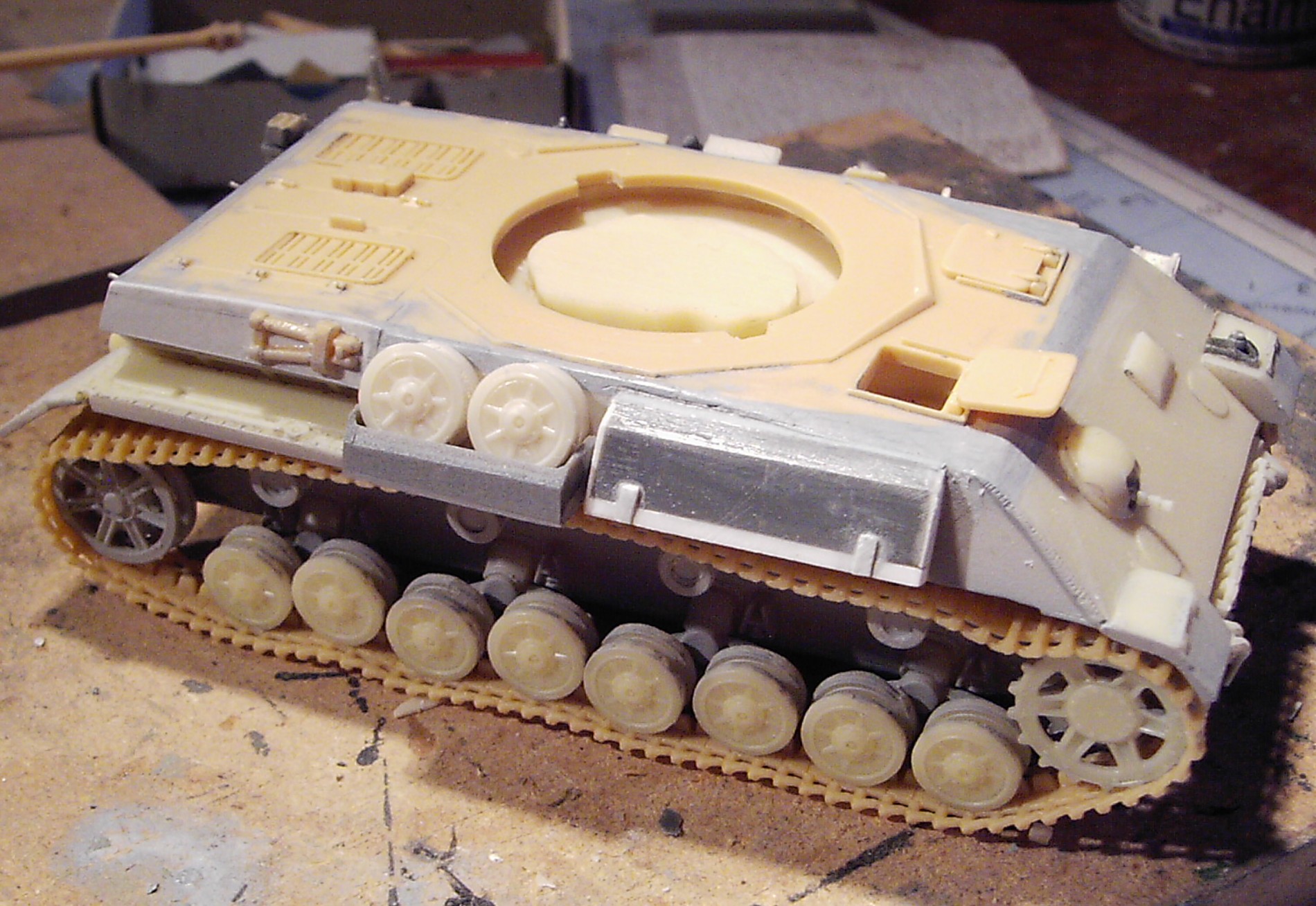 fitted surprisingly well. Zimmerit was then added using Vallejo acrylic putty, which helped me to hide the joints between the Revell and Euromodel parts.