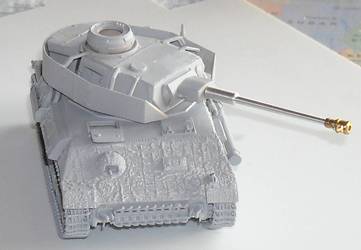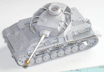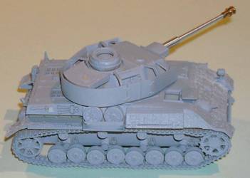 2. Packaging Sturdy top opening cardboard box. 3. Type of kit Multi-piece resin. The hull and turret are clearly based on that of the Revell kit but with a major facelift of the hull. All hatches of the hull and turret are closed. The turret looks like your regular Pz IV turret, except for the lack of a Rommelkiste on the back, which I find surprising. The running gear is nicely done and
