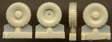 ![]() A fairly simple set to review. Included are four exceptionally well-made wheels to replace the mediocre plastic wheels included in the Heller VAB 4x4 kit. There is an excellent tread pattern, and the wheel hubs are extremely detailed. Those are not air bubbles visible in the center of the wheel hubs, but rather I think they are lubrication points. Whatever they are, they are supposed to be there. Combine this set with Extratech's VAB 4x4 Detail set, to make a superb replica out of the Heller kit. |