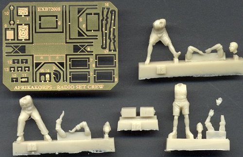 ![]() Overall an excellent set of figures. Three all-resin figures, plus a brass radio stand with resin and brass radios. Two of the figures are in sitting/leaning poses, and the third is standing (actually the same figure as included with the Rommel Staff set). Very good design and molding of the figures. The brass sheet includes a rifle, headphones, and uniform details, like medals and buckles. |