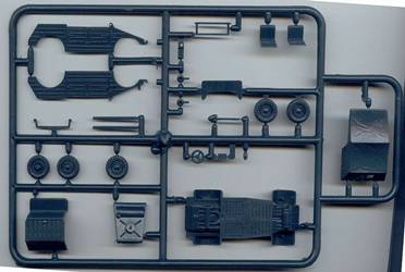 This set is meant as a conversion to transform Italeri's Kübelwagen kit into the rail capable Type 157, which was developed in 1943. The parts are nicely cast without any air bubbles or other blemishes.