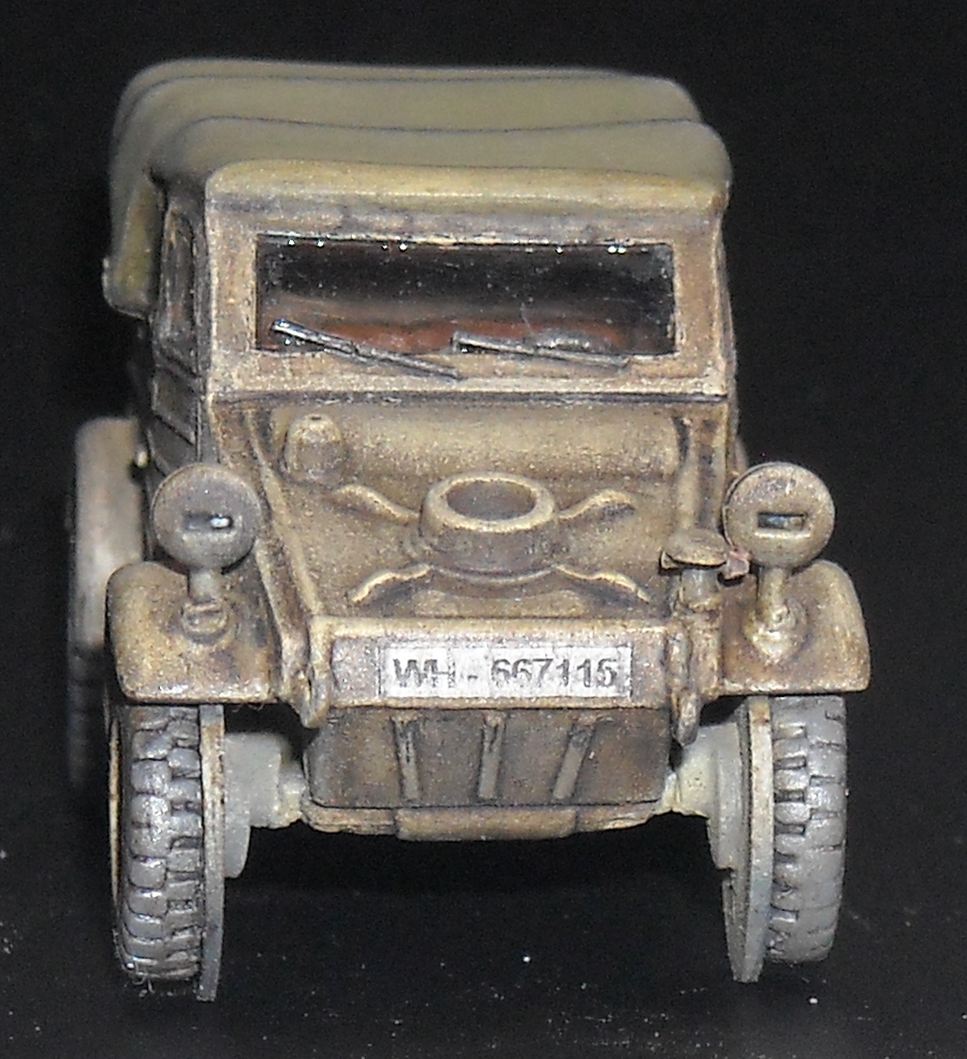 Timothy Lau points out that the third marking option ("WH 621377" in 334th Infantry Division) is wrong on two accounts. First of all, 334th Infantry Division wasn't part of the DAK, but that's not all. Here is the actual "WH 621377". As can be seen, it was part of another division in another theater and was painted in another color. To add insult to injury, the actual vehicle has the longer fenders of the later type.