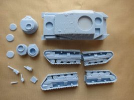 The kit comes in a carton box measuring 21.5cm x 8.5cm x 3cm. Parts are separate packed in separate plastic bags and contains only 16 parts cast in light blue resin.