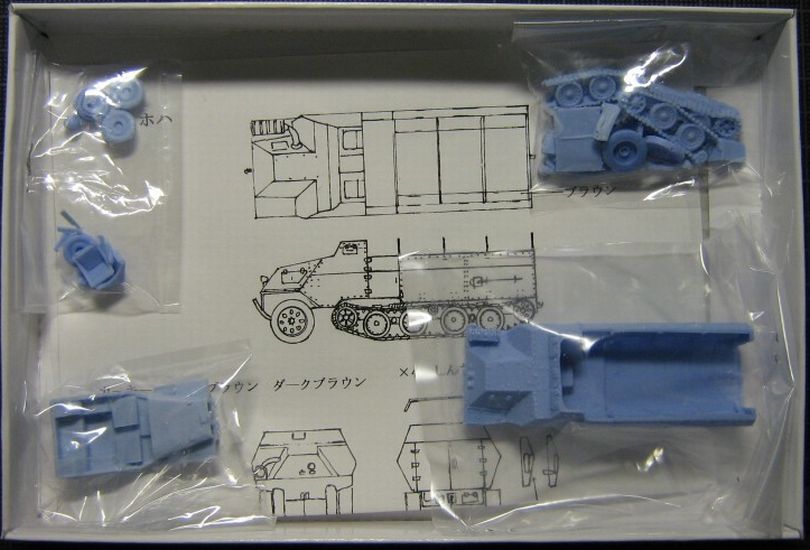 The two kits come in a carton box measuring 21.5cm x 8.5cm x 3cm. Parts are separate packed in separate plastic bags. The half-track has 23 parts while the