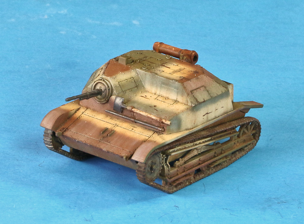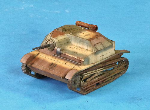 smallest tank model I have ever built. Well, it's tied, I guess, because I previously built this same tank from Al.By. Marc Mercier previously reviewed the First to Fight TKS w/20mm Cannon kit, and included scans of the kit parts in his review. This machinegun version includes the same sprue of parts, with an additional smaller sprue that contains the machinegun parts. Michal Derela also reviewed the 20mm Cannon kit, and within that article, he compared this First to Fight TKS with several others that were marketed at that time. I agree with Michal's assessment of the other kits. Several other companies market, or have marketed at one time, several variants of the TK tankettes (TKS, TK-3, TKW, etc.). My further opinions of some of the other kits are: the Al.By is OOP, and lacked hull rivets and had poor tracks; the ModellTrans kit is pretty decent, but again with poor tracks; NRC isn't too bad, though the rivets may be a little over-done, and the tracks are again, poor. The ESO kit looks really nice in the box and has link and length plastic tracks that would look absolutely gorgeous if one is able to handle parts that small, which I have heard from some people, is very difficult. But it apparently has some shape errors, and it is OOP regardless. The less said about the RPM kits, the better. And finally, PART makes (made?) several versions of this tankette, which come with photoetched tracks. Again, the finished tacks look amazing (based on the cover photo on the box), but they come in two layers of brass that need to be glued together after bending to shape, which I think is going to be very, very difficult. (I think it's time I write a comparison article between all of these options...) Consequently, if one is looking to build a TKS, I would recommend this First to Fight kit whole-heartedly. Assembly was a breeze. I drilled open the ends of the muffler, but I should have looked more closely at my references, as I opened up the left end of it too much. Crap. The pioneer tools are nicely shaped, but instead of trying to sand off the sprue nubs from the crowbar, I simply cut one to size and shape from styrene rod of the appropriate diameter as a replacement. I also added some attachment brackets for the tools from some metal foil. A small improvement that I did NOT make, though I think it would have improved the look of the final model, would be to replace the hatch handles with bent wire. According to the dimensions included in Militaria i Fakty #31 Czolg Rozpoznawczy TK-S, the length and width of the kit are perfect for 1/72nd scale, though it's about 2mm too tall. Not that anyone would notice. As with all of my recent builds, the model was painted with MIG's ATOM paints, and weathered with various products from AMMO, AK and Vallejo. |