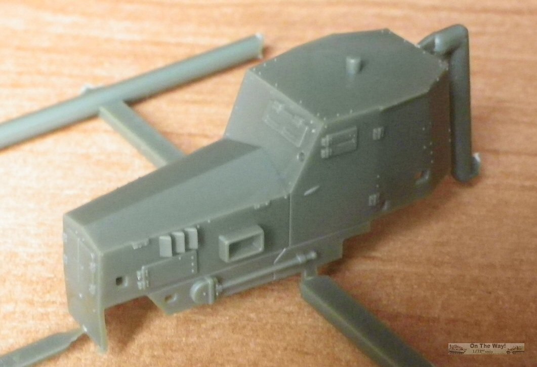 The hull is cast as a single piece, apart from rear door, which can be left open. Sadly, there is no interior in such a simple kit, but