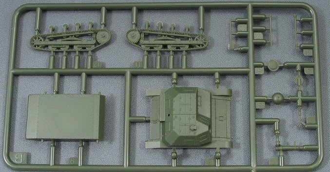 What's in the box? This kit has been designed as a quick build of a small tankette (I know tankette already means "little tank", but the TKS is really, really small ?). This means things are sometimes simplified, like major subassemblies being cast in one piece. This results in an extreme low number of parts : there is only one sprue (which is, strange enough, labelled B; where has sprue A gone?) containing no more than 12 parts. However, these are nicely moulded with sharp definition. This may be a quick build, but it is no short run kit. No