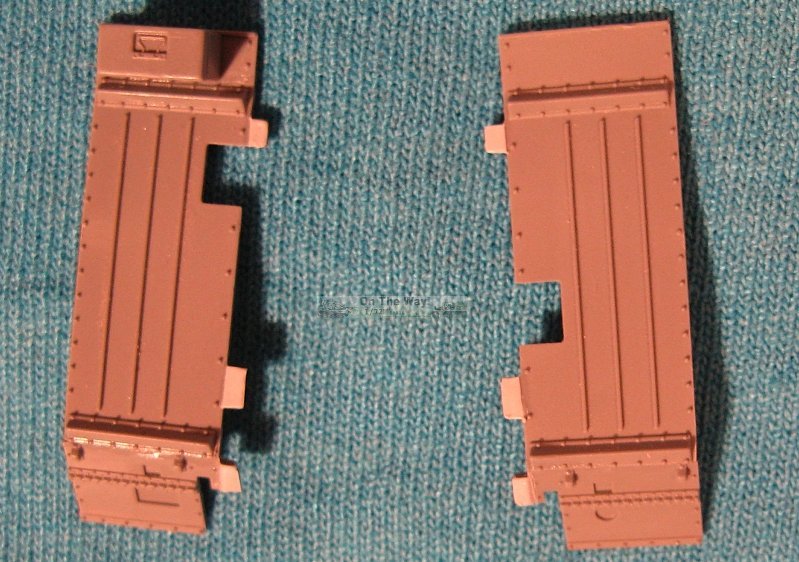 were glued to the rear fenders except for the large one on the left fender (parts D-2 & 2 x D-3) that covers the tools.