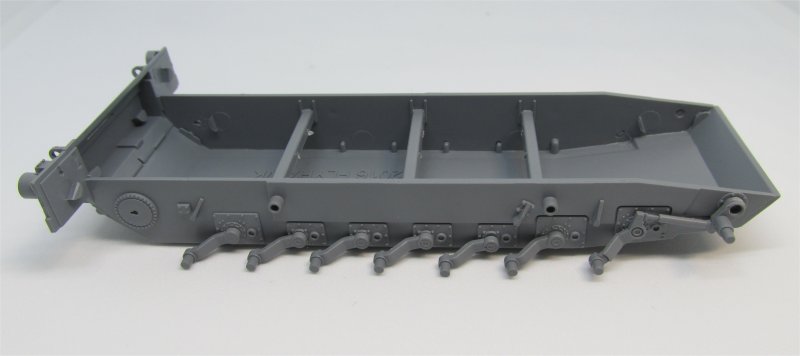 The construction of sub-assembly I is the subject of Step 1 in instruction manual: mounting the wheels and tracks right now, as you should do according to the instructions, would give you troubles during the painting stage because they will be covered by the lateral skirts (but you can mount the return rollers, as they have no rubber rim; in the finished model they will be invisible anyway). The way the kit is engineered lets you position the wheels and tracks later.