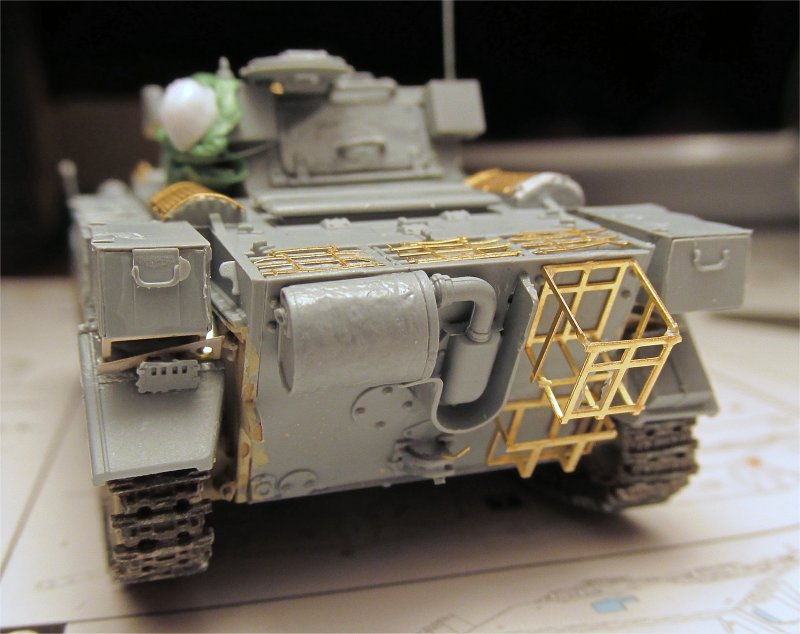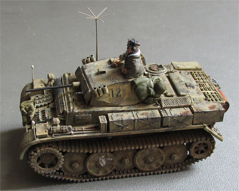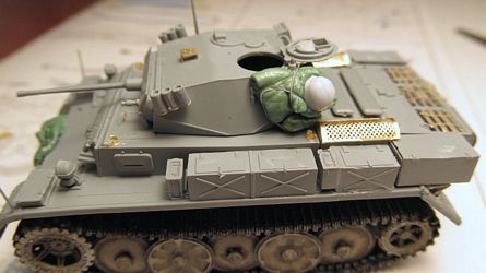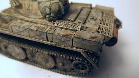 In his preview of this kit Rob Haelterman provided a general analysis of the model and some info about historical background. He already pointed out that this kit lets you build one of those vehicles serving in the eastern front with the 4th Pz.Div, characteristically fitted with an extra armor plate attached to the hull front, spaced out far from the hull. Another typical aspect of those vehicles was a set of replacement segments for the rear idler, held in place above the driver's visor by a steel rod; most vehicles carried different combinations of rubber and steel segments.
