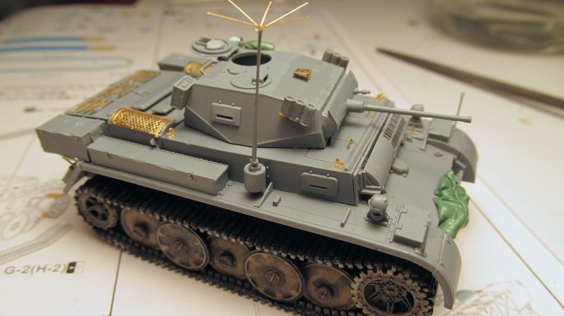 There is a number of PE sub-assemblies conveniently pictured in separate squares in the instructions, with PE parts identified in cyan color. It must be said that some can be left where they are because there are plastic equivalents already in place (the four lifting hooks in the hull - PE 4/5 - and the handles on the front hatches - PE 11), but most of them can not be avoided, or the final model will look rather fast-build and not very similar to the real vehicle. In case you want to use the PE parts in place of the plastic ones, the latter have to be carefully removed with a scalpel, to avoid destroying details or leaving scratches, then each PE part has to be bent and positioned. For example, in the first one of the following pictures you can see the plastic handle of the hatch still in place, while in the last picture you can see the definitive PE ones, along with PE hooks and electric wires for the front lights. Since the vast majority of the kit is identical to the previous one already built by Rob Haelterman, I am not going to repeat all the details he pointed out already. As a general suggestion, I would only repeat that the kit is perfectly engineered, but it is so finely crafted that every single piece needs a special attention, so an extreme care is needed when separating pieces from the sprue and when cleaning them before glueing them together. Also, follow the instructions very carefully because many pieces might look identical while being different - the rule of thumb, as stupid as it might sound, is that if they have different numbers, they are, well, different. A particular note of merit goes to Flyhawk for not having been lazy and given a single possibility for the set of idler segments to be mounted above the visors: three different combinations are provided instead, from which you can choose, reflecting all possible combinations seen on real pictures. Also, the detail on jerrycans is the best I have ever seen, with separate handles which increase realism to the maximum extent. Other differences between this one and the "early" Luchs previously released by Flyhawk lies in the external stowage, because the position of tools and jerry cans differs somewhat. This naturally means that PE parts to be used in both kits are different too. Talking about PE parts, it seems that the six spokes of the star-shaped antenna (PE-13) should have a more acute angle with the rod than showed in the instructions - see real photos. Assembling hull and wheels is quite straightforward: I am not going to repeat what you can find in the aforementioned review. I would just say that sprocket wheels (K14-15-16-18) should see their two halves firmly inserted to avoid teeth misalignment, yet this does not happen because the squared peg-hole combination is a bit loose, so be careful. Taking your time, in some days of work the model will be complete. I added some extra stowage sculpted from kneadatite/green stuff, trying not to obscure any of the very fine details. When mounting the commander's hatch in open position, I had to fill a very visible ejector hole. You might notice that the width indicators are built from scratch: this is a warning to never mount very fine parts until the very end ...