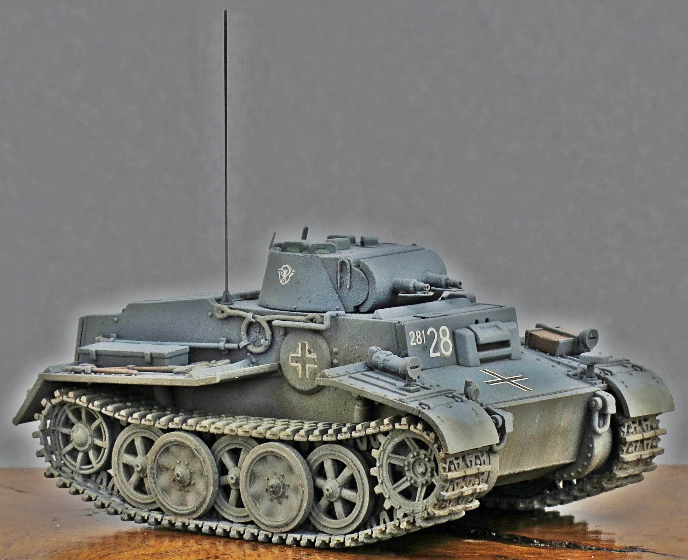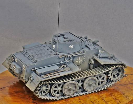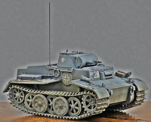 History While most modelers are familiar with the Panzerkampfwagen I Ausf.A and Ausf.B, the Ausf.C (VK 6.01) and Ausf.F (VK 18.01, also known for a while as Pz.Kpfw.I Neue Art Verstärkt) are somewhat more obscure. Even though all four Ausführungen shared the name "Pz.Kpfw I", the Ausf.C and Ausf.F had very little in common with the Ausf.A and Ausf.B, or with each other for that matter. The Ausf.C was meant as a very fast light tank, while the Ausf. F was meant as a very slow and heavily armored AFV. If the Ausf.F had anything in common it is with the Pz.Kpfw. II Ausf.J (VK 16.01), which, incidentally, Flyhawk has annouced as its next kit. A Versuchsfahrgestell