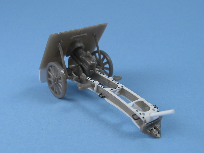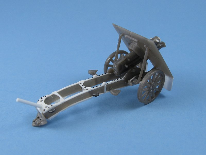 the wheels on the museum pieces are not original or maybe from guns produced post First World War). The kit's shield does