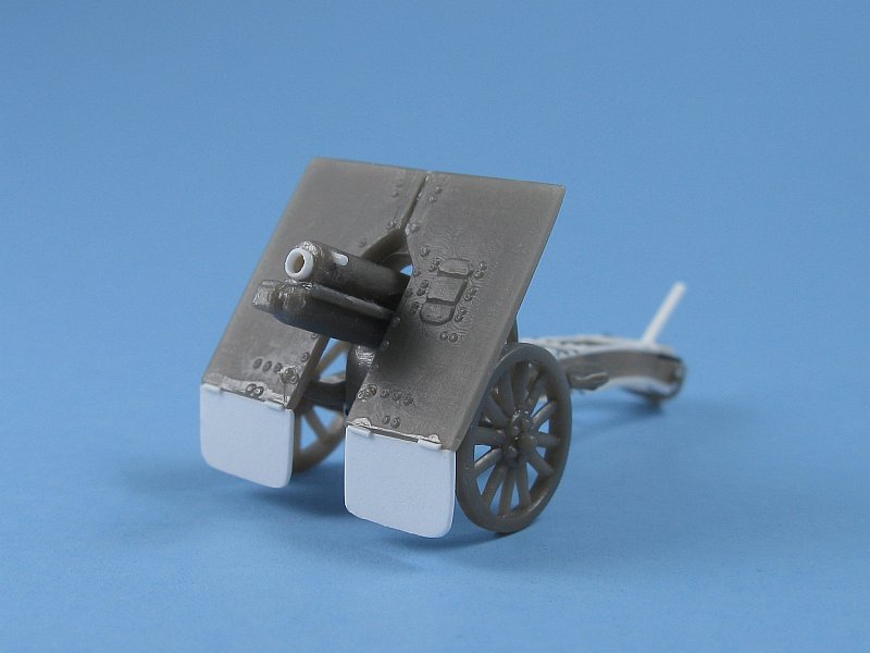 The box top picture serves as the painting guide and shows the gun in an overall greyish green camouflage which I assume is the colour that the Austro-Hungarian