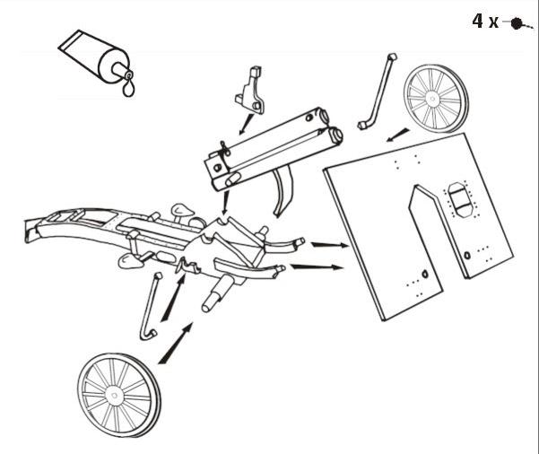 Inside the box you get four identical sprues in hard grey styrene plastic. Each sprue has just 8 parts. Instructions come as a simple exploded diagram on the