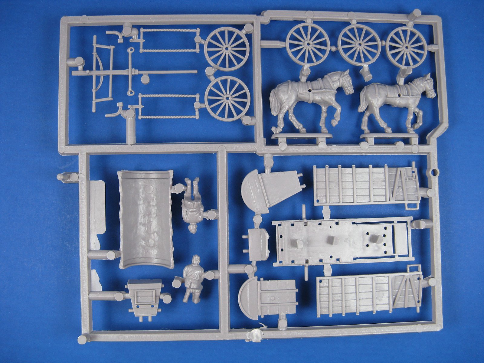 HäT's WW2 German Field Wagon represents the Hf.2, heavy army field wagon. Inside the box there are three identical sprues of medium grey coloured hard plastic