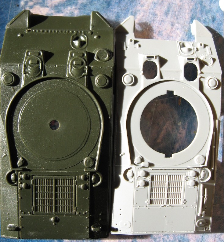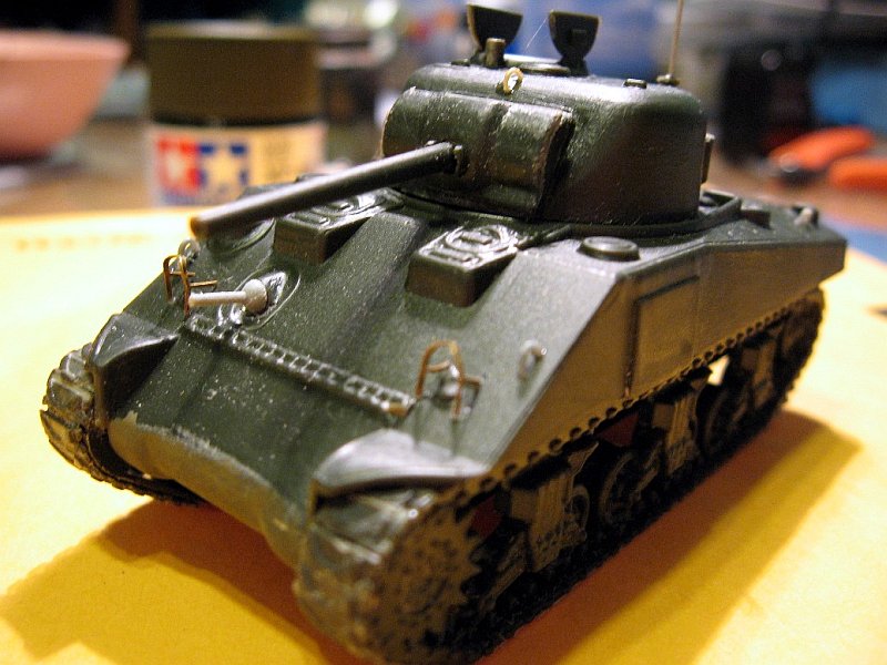 With the vast number of spare parts from Dragon Sherman kits and link and length tracks left over from the ESCI/Italeri line (due to the nicely fitting "rubber band" tracks) and a little scratch building and some serious sanding, we could have a cheap source of nicely detailed M4A2's.