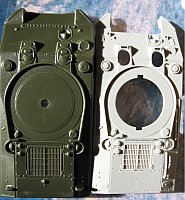 Beyond dull descriptions of parts counts, we notice that the "soapy" soft detail continues with this brand. The driver/co-driver's area shows this well. There is no weld detail on the hull and the back of the road wheels are wide open like the previous kits - worse than Trumpeters Sherman efforts. I do remind the reader these kits are for wargamers to build up armies quickly and with a budget. A closer look does reveal these kits do have merit.