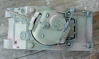 There were no decals included in the sample I received, and I don't think that commercial examples come with any either. The stars on the turret sides are from an old Microscale decal set, with black pencil used to scribble them out (the crews did this to reduce their visibility). The other markings are rub-on transfers from SMA/SSP. I painted the kit with AeroMaster and Testors Model Master acrylics.