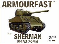 ![]() HäT's latest entry is another version of the Sherman tank, this time, a late-hull, 76mm M4A3. As is typical with this company, the kit is well researched, and scales out perfectly well to 1/72nd scale. It is a wargamer's kit, with very few parts and easy assembly. But it can also provide a good basis for static display modelers to use for upgrade and conversion projects. The hull correctly represents a mid-series version of the big-hatch, wet stowage hull design. There is some indistinct detail on the front hull plate, such as lift rings, headlight mounts, and the gun travel lock. All of these can be easily replaced by modelers wanting more and better detail. The rear hull lacks any sort of detail, which is beneficial, so there are no tools and other such items to be sanded off.