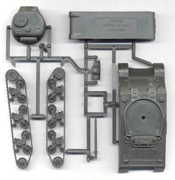 The model is very simple: only eight parts. No instructions were included with the review sample I was provided, but none are really necessary either. As you can see, the hull is fairly bare of smaller details, such as headlights, tools, lift rings, etc., which need to be added by the modeler, if desired. Also the tracks are over-simplified, and lacking guide teeth.