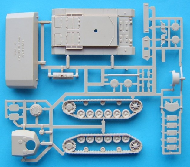 Hat have released the second version of the PzIII, this time the ausf J with the L/60 50mm KwK 39. Moulded in a light tan colour instead of the Panzer grey of the Aus G, this eases painting as most would have been Dark Yellow in base colour anyway. The Ausf J was introduced after the H incorporating all the improvements in the G and H into one hull, this meant that production of the H was only small as more J's were ordered. The kit is broken down the same as the Ausf G, the hull is the same as used in the G and there lies the problem, the G had the two piece transmission access hatches which were replaced by a one piece cover in the J the tow shackles and lights also need to be changed. The air intakes on the rear access hatches are supplied as separate pieces. The kit has anew set of tracks with the later sprocket and idler, there is also a turret bin mounted although this is not solely used on the J and above as earlier marks had the retro fitted during workshop upgrades.The only thing missing and I am not sure why as the turret side hatches are separate, are the hull escape hatches, these could have been done the same way as the turret hatches without too much trouble. The other problem with the kit is the drivers Glacis plate or rather the MG mount, the J introduces a different ball type of mount as shown below.
