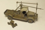 | All together the kit is made up of 50 parts. Never one to follow instructions, I started the build with the undercarriage. It is very simplified with a minimal of parts. It went together with no major issues. I then moved on to the cab/bed assembly. This assembly proved to be a little more problematic. The doors are molded in one piece with the bed sides and also contain the post risers that support the cab cover. I had a hard time getting the two posts (left and right) to interface with the cab cover correctly. In the end I trimmed a bit of length off the top and butted them into the top edge of the cab cover. I don't know if this is correct, but it looks acceptable. The interior is rather sparse with only two shifter levers and the steering wheel/column. All required quite a bit of cleanup as they were clunky and over scale. The kit provides a small acetate sheet for the windscreen. I elected to just leave it off as it was a bit undersized for the opening. The radiator has a protective guard in front of it but mine looked badly oversized. Not having the desire to scratch-build a new one, I left it off (see a trend here?). |
