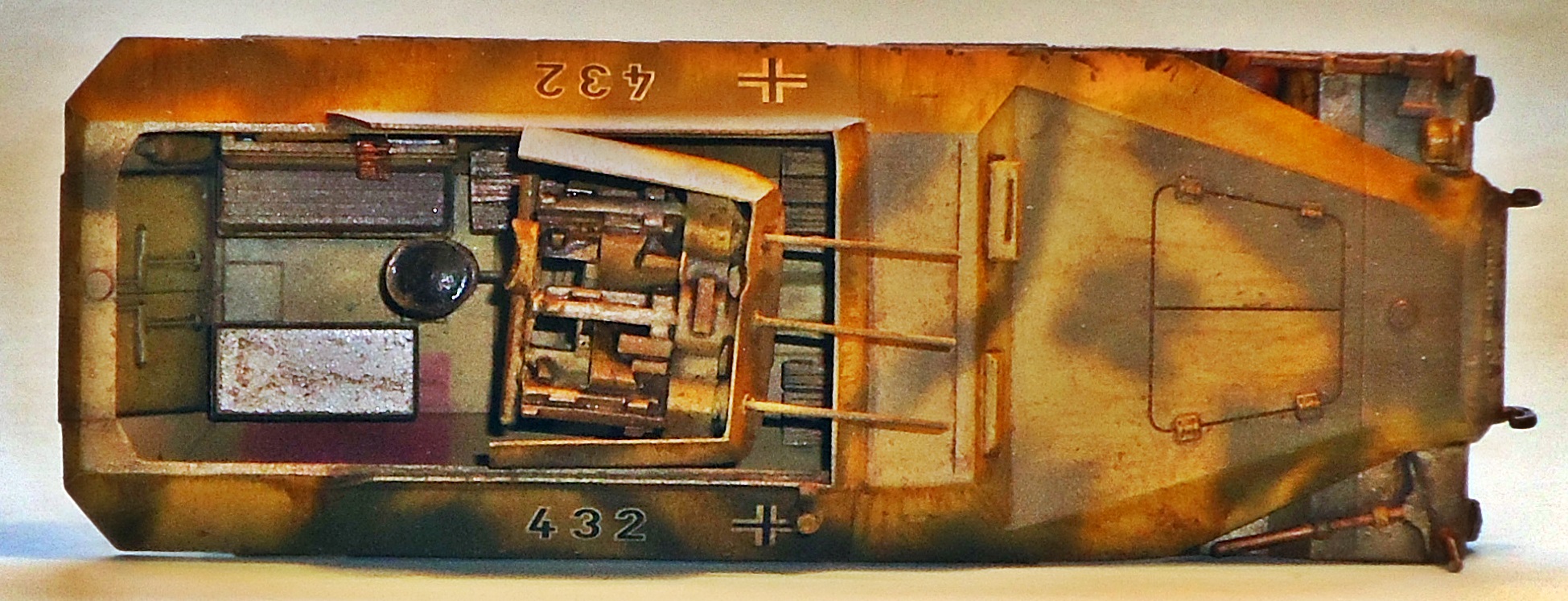 extra armor for the top of the hull doesn't quite match the design.