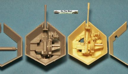 Above we have a comparison of the gray Hasegawa turret parts at left,