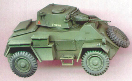 This kit contains slightly more stowage than the Daimler, including racks of water cans, and some stiff looking bed rolls. I haven't yet attached them to my kit pictured above, but someday I will load this car down with tons of stowage to give it that "lived in, used and abused" look. I painted mine in olive green for an European theater example, and used the kit decals, which were a bit thick, but very well printed.