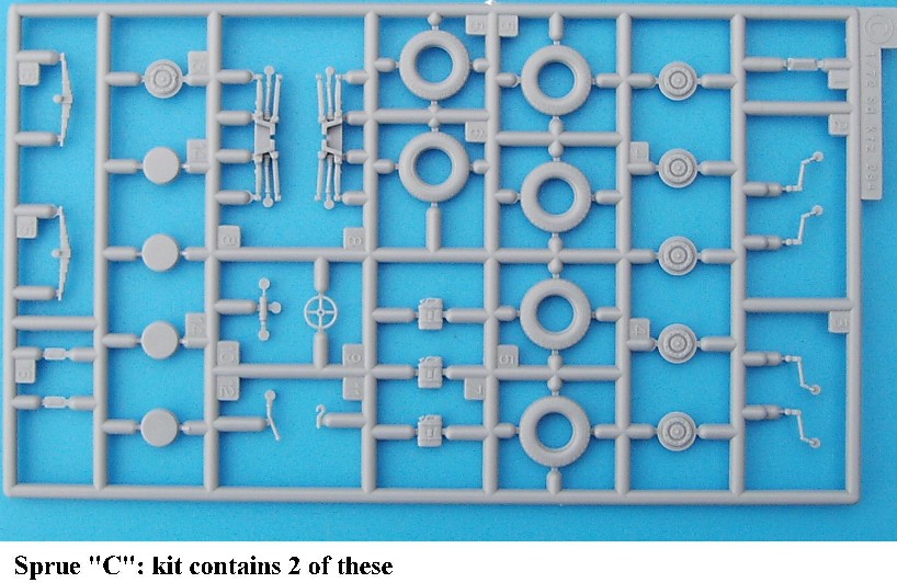 2 sprues mainly with wheels and suspension (for a total of 12 wheels/tyres with 2 different types of thread and 2 types of hubcaps) 2 sprues with upper/lower hull, sponsons, crew figure etc