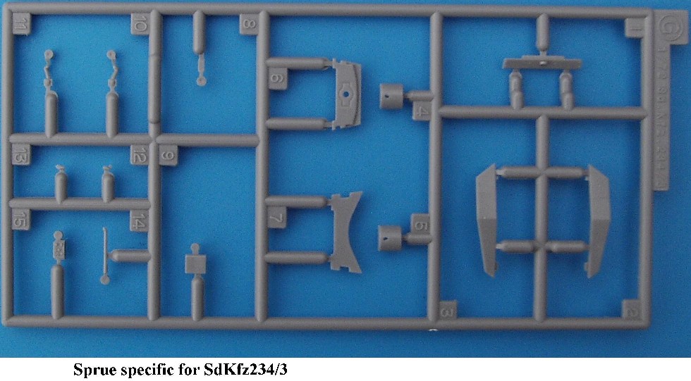 Small sprue for the Gun (presumably coming from the 251 STummel, judging from the not-to-use sidewalls) Small sprue with bits for the 234/3