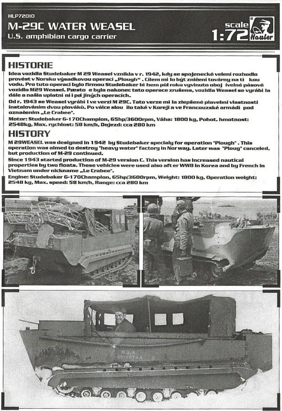 offers the original M29 weasel (with blunt bow and stern) as kit 72012,