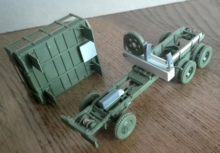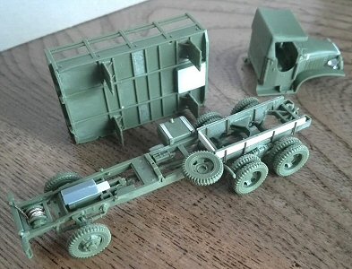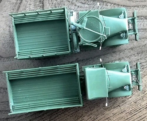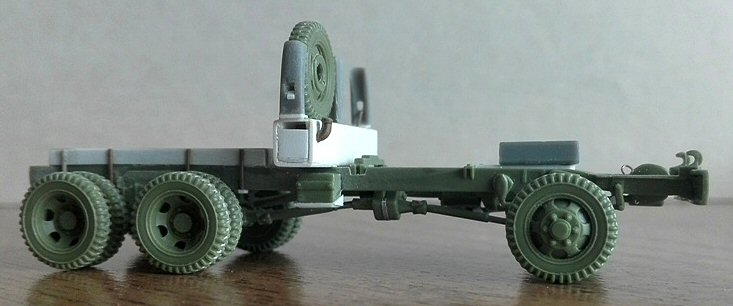 I preferred the less complex conversion ("really simple" would be more correct) to a short wheelbase CCKW-352, by modifying the chassis and the flatbed body. I didn’t correct the 1.5 mm difference in the wheelbase because the kit is shaped around this difference and I though correcting it could give major problems.