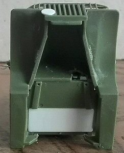 • The fuel tank was inside the transversal housing placed between the cab and the body. This adaptation and the one below are the "hardest" part of the conversion. Using a drawing to scale down the dimensions, I started filing a thick sprue section to obtain a squared section. Around this I glued plastic stripes to make the housing, leaving a 0.5 mm space between the top of the tank and the top of the housing. To this I added the curved filling pipe and its cap made by stretched sprue.