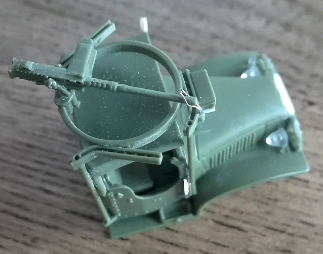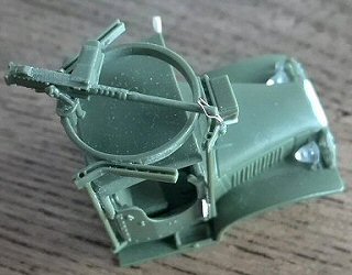 The standard AA MG mount for the open cab was the M36 type (however exceptional use of the M37 is photographically documented), but it wasn’t always present. Although shown as optional in the tarpaulin instructions, it could be used with or without the fabric hood depending on the effect wished by the modeller.