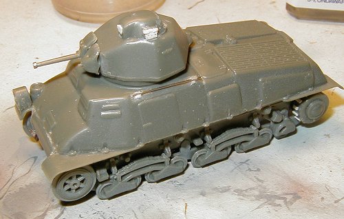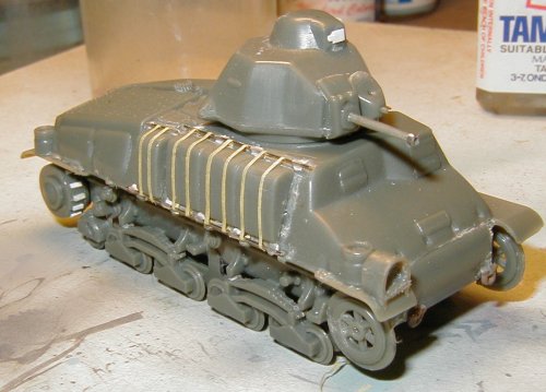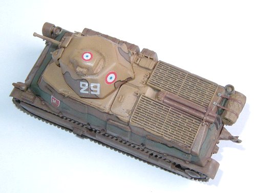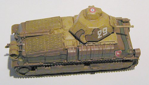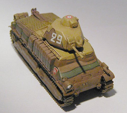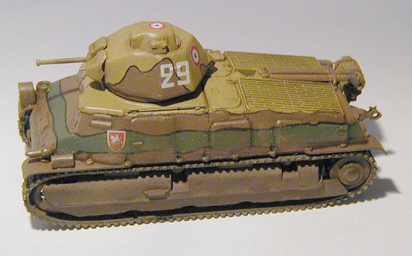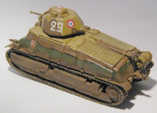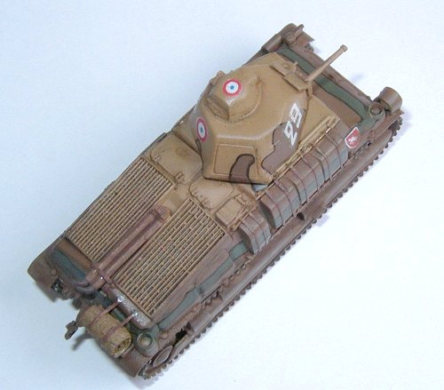 The Somua S35 was probably the best French tank of the period and I was well happy of being able to get a kit in injected plastic of this attractive model. The Heller kit that I used in this assembly is an old kit, but comparing it with a recently reissued copy of the model, I verified that no difference beyond the color of the plastic exists. Thus the mold is showing signs of its age: lack of details, the details which are present have low definition, tracks made of soft plastic, etc. But it still is an interesting kit.