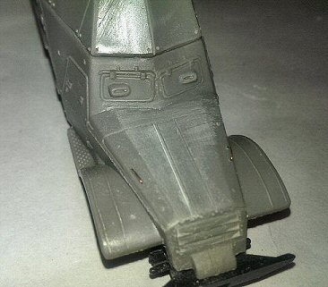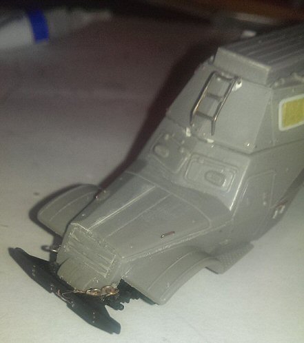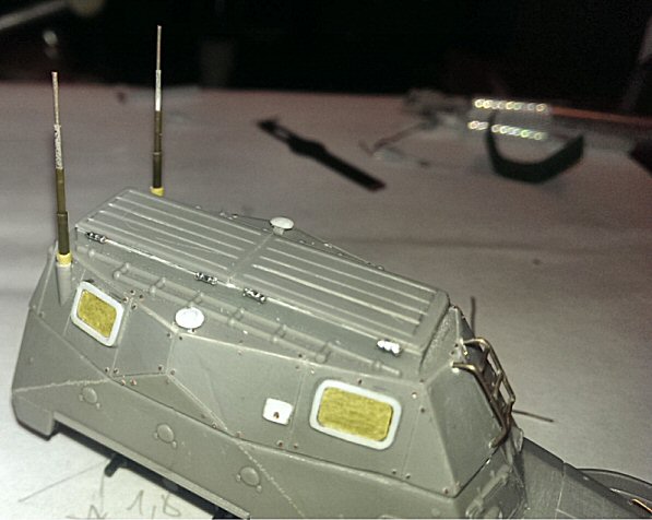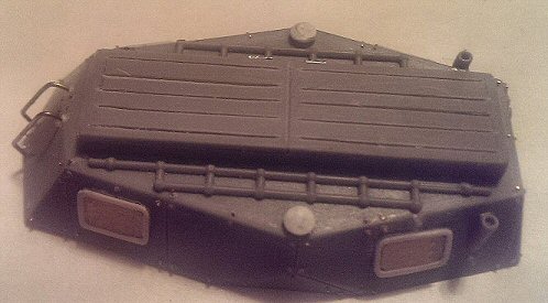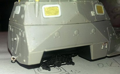 The hinges on the roof doors were made from heated and stretched sprue and 3M aluminium tape. Wind the tape around the sprue and make notches to imitate a hinge.