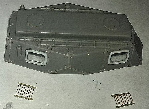 Then, I found out that the upper hull part lacks many details, while the roof is incorrect. On the model kit there are two round hatches, on real sample – doors.