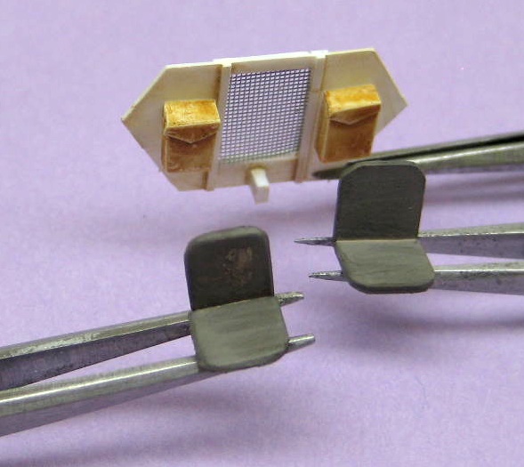 - a strip of brass rod/sprue was added to the lifting mesh panels, apparently that is some