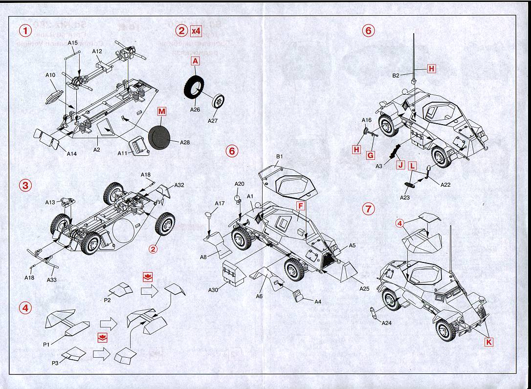 3. Quality: As this kit is based on the Sd.Kfz.222 from ICM, I refer to the review of that kit. Again, there is no interior provided, and given the scarce resources on this vehicle, you're basically on your own. The photo-etch part, on the other hand, is finely done, but the three-part assembly fits difficultly. The main difference with the 222 is the lack of turret, the new hull top and a nice rod antenna. I originally