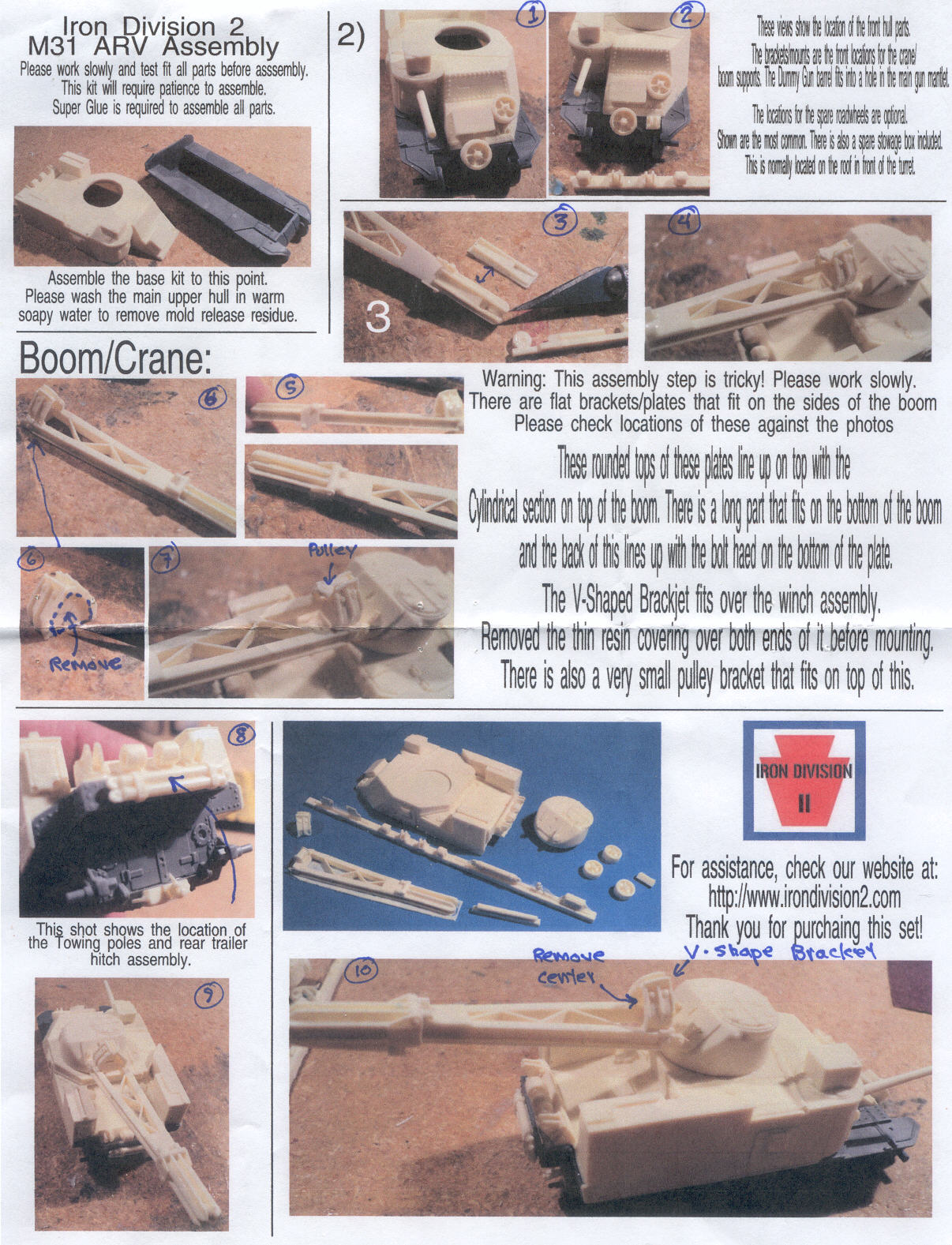The M31 ARV was based on the riveted hull M3 medium tank, which is the subject of this model conversion. The M31B1 was based on the welded hull and diesel engine M3A3. There also was an